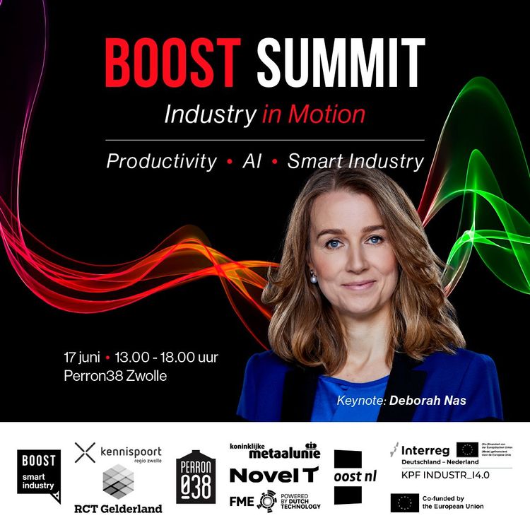 Deze summit wordt georganiseerd door Boost Smart Industry, KPF INDUSTR_I4.0, Koninklijke Metaalunie, Kennispoort Regio Zwolle, Oost NL, RCT Gelderland, NovelT, FME en Perron038.